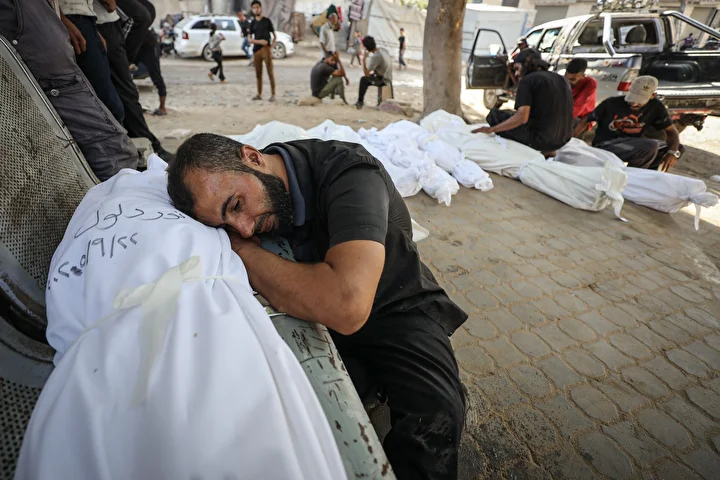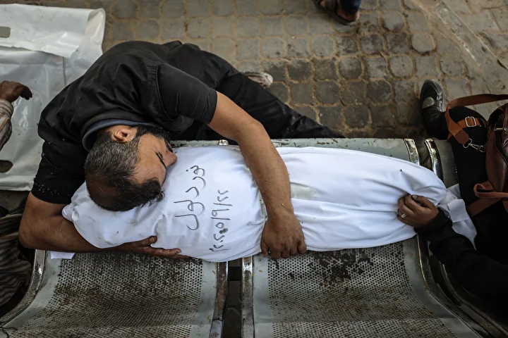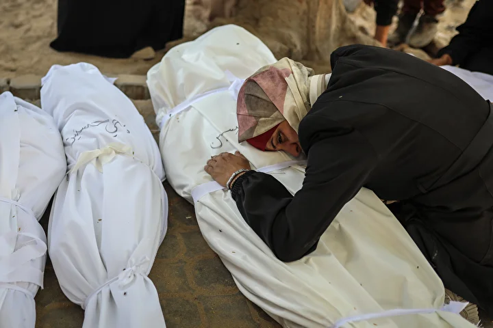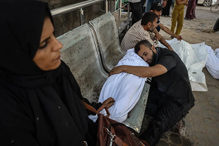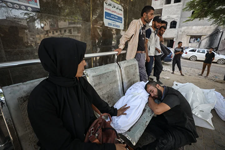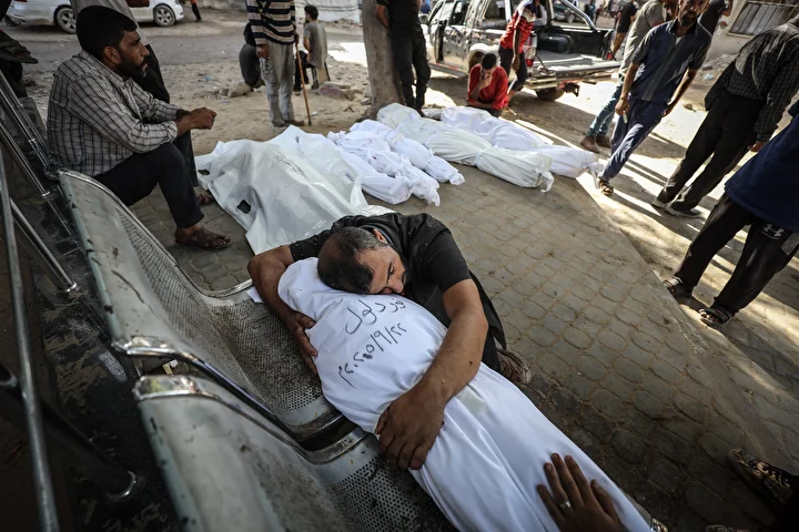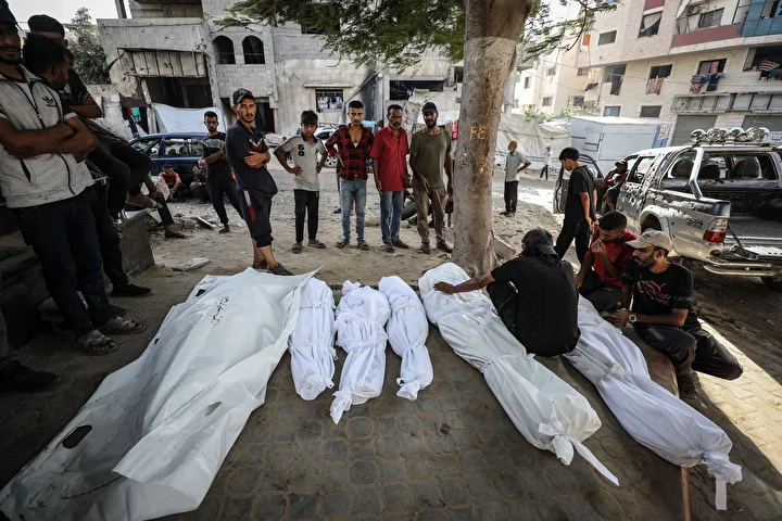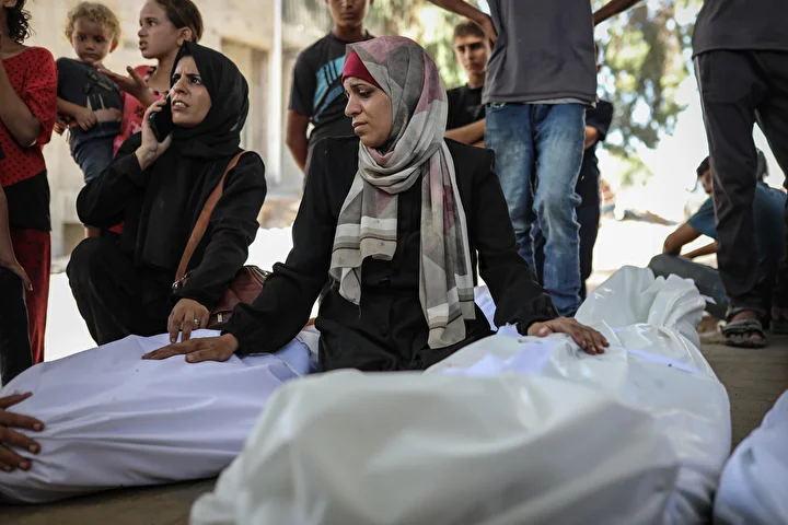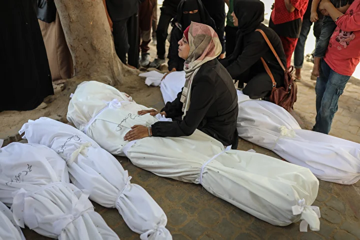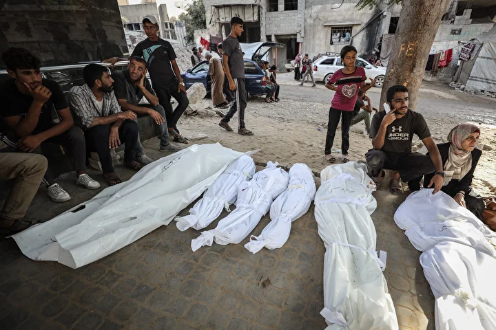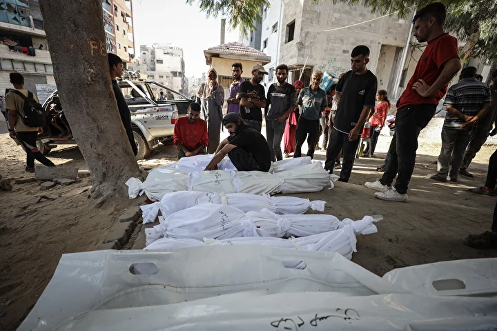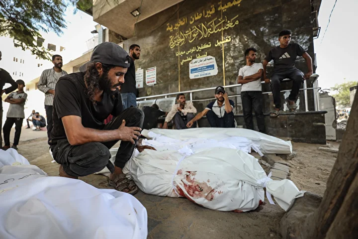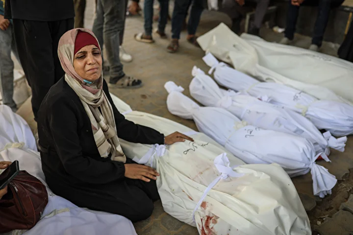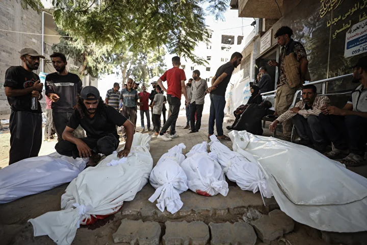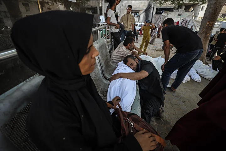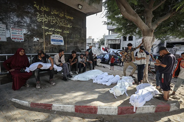 Saldırıda yaşamını yitiren Filistinlilerin cenazeleri Şifa Hastanesi’ne getirildi.