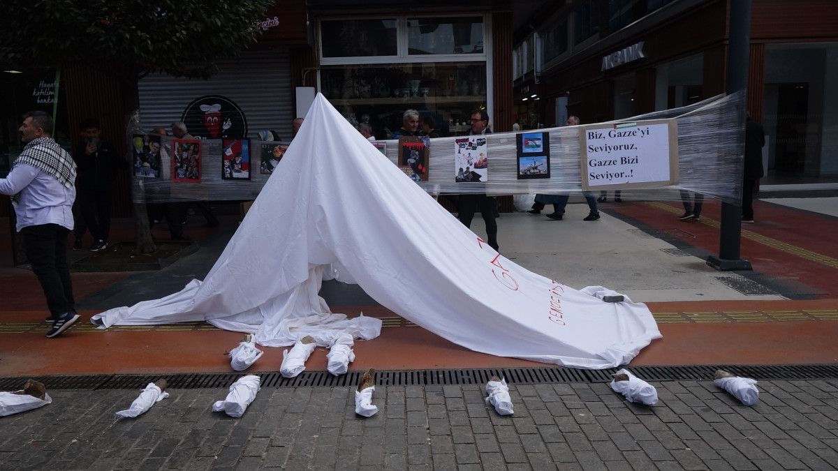 Artvin Çoruh Üniversitesi Görsel İletişim Tasarımı Bölümü Öğretim Üyesi Dr. Kemal Sağlam, Gazze’de yaşanan katliamlara dikkat çekmek amacıyla Trabzon’un Kahramanmaraş Caddesi’nde bir protesto gerçekleştirdi.